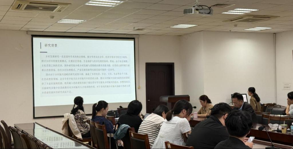 徐贝贝老师组聚焦乡村振兴与思政教育的融合创新,由赵凤敏老师汇报课题《乡村振兴战略中思政元素挖掘与资源库搭建研究》及论文《红与绿融合:乡村振兴赋能高校思政教育路径研究》。